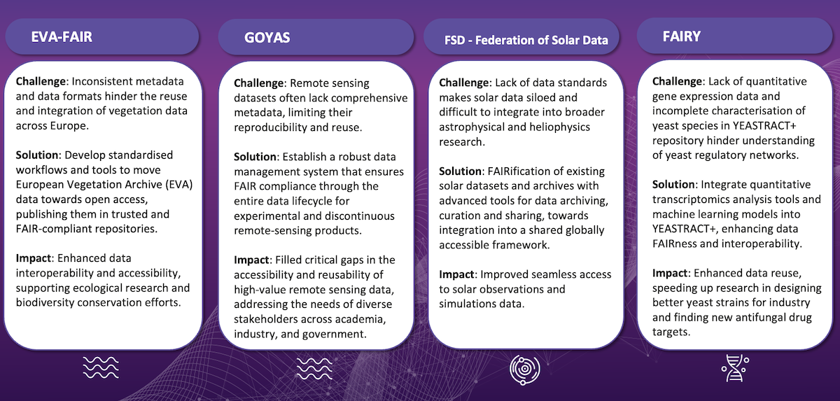 By leveraging the unique capacities and needs of the five clusters, OSCARS enhances the development and consolidation of federated data infrastructures across domains, bringing them closer to being FAIR-compliant repositories – structured to handle diverse data types, access needs, and scales – and facilitating their integration into the broader EOSC ecosystem.