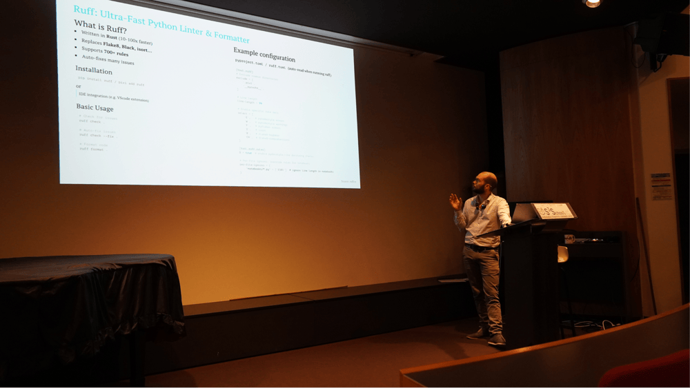 Day 4 also introduced AI-assisted development as an emerging practice that can support research coding, but only when used responsibly. Rather than presenting AI as a replacement for expertise, the school highlighted it as a productivity amplifier for targeted tasks such as clarifying code intent, improving readability, suggesting refactorings, or drafting test cases. At the same time, participants discussed essential safeguards—avoiding secret leakage, not executing untrusted code, and validating outputs through testing—to ensure that AI support strengthens reliability rather than introducing new risks.