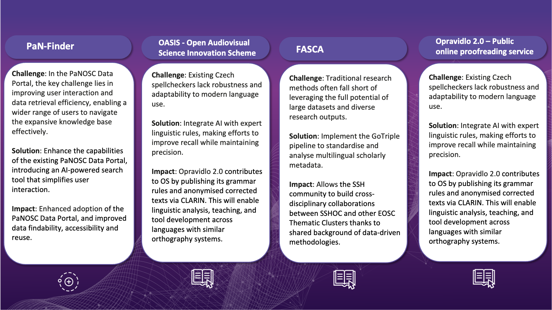 OSCARS funded projects addressing the thematic area of Software, AI and Tools for Open Science